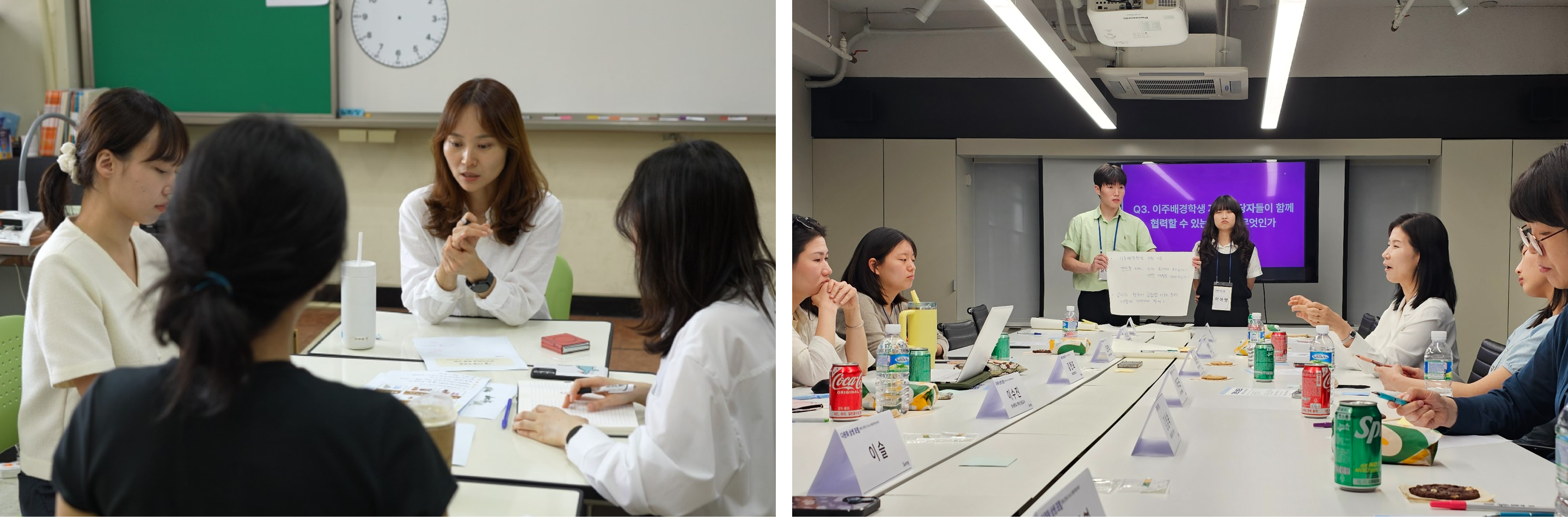 지현 ‘프로퍼’ 팀이 대표적인 사례인데요. 이 친구들이 만든 진로 설계 워크북 ‘이미(immi)’는 이주배경 청소년*이 체류 자격(비자)를 이해하고, 성인이 되어도 안정적으로 체류 자격을 유지할 수 있도록 돕는 솔루션이에요. 이 팀은 성과 공유회를 할 때부터 교육청과 협업해서 실제 교육 현장에 워크북을 배포하기도 했어요.
